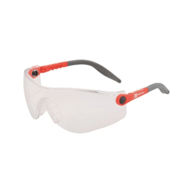Gli ARDON® V11-000 sono occhiali protettivi classici con un design moderno, studiati per offrire massima sicurezza e comfort durante l’uso quotidiano. Dotati di aste regolabili in lunghezza e inclinazione (4 posizioni) e di terminali morbidi in nylon antiscivolo, garantiscono un adattamento perfetto senza rischio di scivolamento. Il ponte nasale morbido e trasparente offre ulteriore comodità e stabilità, rendendoli ideali per un utilizzo prolungato. Le lenti in policarbonato trasparente assicurano un ampio campo visivo e sono trattate con filtro UV, anti-graffio e anti-appannamento. Conformi alla norma EN 170 e con marcatura 2-1.2 1 FT O, garantiscono protezione certificata e resistenza meccanica. Sono la scelta ideale per cantieri, officine, lavori di manutenzione e ambienti industriali.