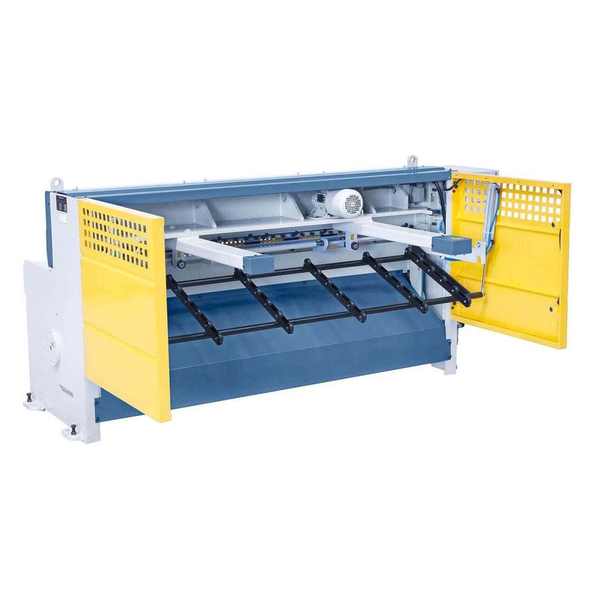 La Bernardo MTA 1360 x 3 mm NCC è una cesoia a ghigliottina motorizzata di alta gamma, equipaggiata con sistema pneumatico di supporto lamiera per garantire la massima precisione e praticità nel taglio di lamiere sottili e grandi formati. Con una lunghezza di taglio di 1360 mm e capacità fino a 3 mm di spessore (400 N/mm²), assicura tagli puliti e senza bave grazie alle lame doppie in acciaio di qualità. Il registro posteriore motorizzato con viti a ricircolo di sfere e controllo NC integrato offre precisione e rapidità nelle regolazioni. La macchina è dotata di protezioni posteriori con fotocellule, piano con rulli integrati, righello laterale e supporti frontali per agevolare la movimentazione dei pezzi. Con una costruzione robusta in acciaio saldato, 31 colpi/min e un motore da 3,0 kW, la MTA 1360 x 3 mm NCC combina potenza, sicurezza ed efficienza, ideale per officine e industrie che richiedono una cesoia professionale e affidabile.