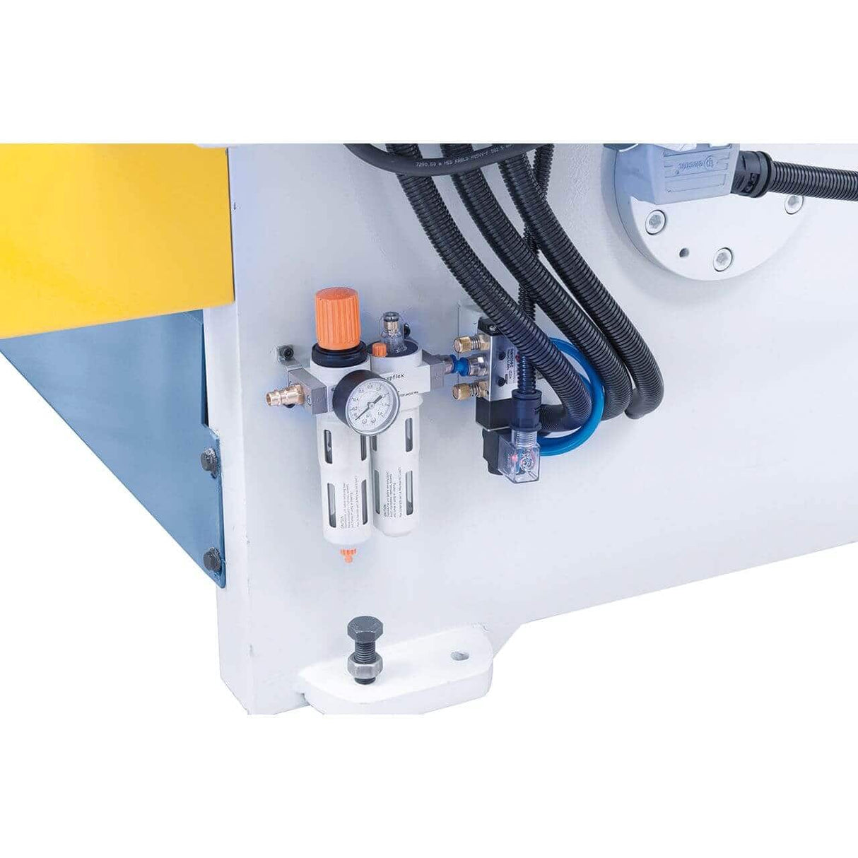 La Bernardo MTA 2060 x 3 mm NCC è una cesoia a ghigliottina motorizzata di livello industriale, equipaggiata con sistema pneumatico di supporto lamiera per garantire tagli precisi e stabili, specialmente su fogli sottili e grandi formati. Con una capacità di taglio fino a 3 mm (400 N/mm²) e una lunghezza utile di 2060 mm, questa macchina offre risultati professionali grazie alle lame doppie in acciaio di qualità che assicurano superfici pulite e prive di bave. Il registro posteriore motorizzato NC con viti a ricircolo di sfere e il pannello di controllo integrato BRL 401.2 permettono regolazioni veloci e accurate. Il piano di lavoro con rulli integrati, i bracci frontali e le protezioni posteriori con fotocellule semplificano la gestione delle lamiere in totale sicurezza. Con un motore da 4,0 kW, 35 colpi/min e peso di 1710 kg, la MTA 2060 x 3 mm NCC è la soluzione ideale per officine e industrie che richiedono affidabilità, potenza e precisione.