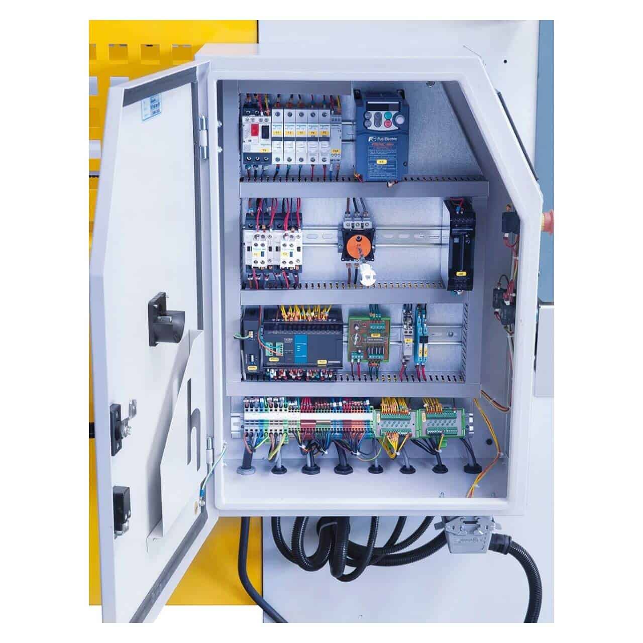 La Bernardo MTR 3060 x 4 mm NCC è una cesoia a ghigliottina industriale ad alte prestazioni, progettata per il taglio preciso ed efficiente di lamiere fino a 4 mm di spessore (400 N/mm²) e 3060 mm di lunghezza. È dotata di controllo Fuji con touch screen, motorizzato con viti a ricircolo di sfere e sistema pneumatico di supporto lamiera, che garantiscono massima precisione, sicurezza e praticità d’uso. Le lame doppie superiori e inferiori in acciaio temprato assicurano superfici pulite e prive di bave. Grazie al piano di lavoro con rulli integrati, ai supporti frontali, al righello laterale con scala e all’illuminazione della linea di taglio con silhouette, la macchina offre comfort operativo e versatilità, con predisposizione per dispositivo opzionale di taglio angolare. Con un potente motore da 7,5 kW, struttura robusta in acciaio saldato e un peso di 4000 kg, la MTR 3060 x 4 mm NCC rappresenta la soluzione ideale per officine e industrie che richiedono una cesoia professionale potente, sicura e duratura.