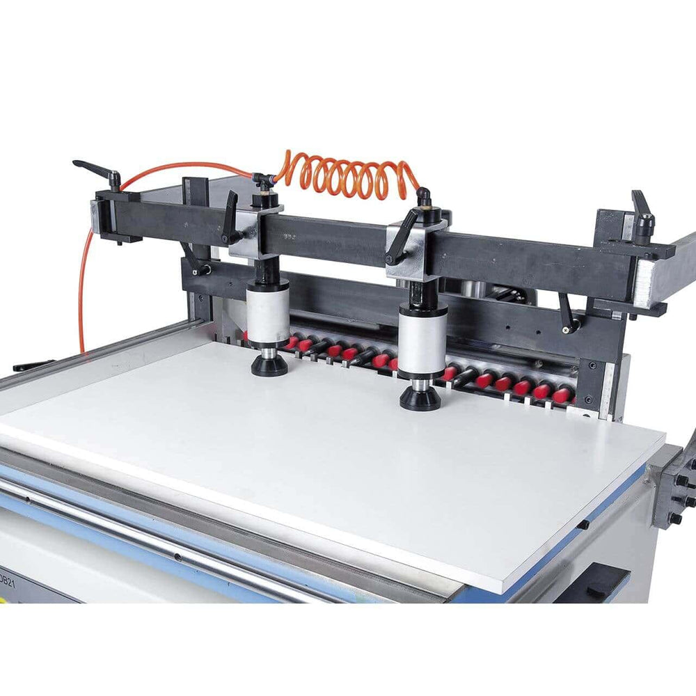 La Bernardo Foratrice multipla Multibor DB 21 è una macchina professionale progettata per falegnamerie e aziende del legno che necessitano precisione e produttività. Dotata di 21 mandrini con interasse da 32 mm e una distanza utile di 640 mm tra il primo e l’ultimo mandrino, consente lavorazioni rapide e accurate. Il piano di lavoro ampio da 870 x 560 mm garantisce stabilità durante la foratura, mentre la profondità massima di 50 mm permette applicazioni versatili. Il potente motore da 1,5 kW a 400V assicura prestazioni costanti, con una velocità mandrini di 2800 rpm. Grazie alla pressione pneumatica (6–8 bar) e ai cilindri di serraggio, offre una presa sicura del pezzo. Con un peso di 370 kg e dimensioni compatte, rappresenta una soluzione robusta e affidabile per lavorazioni intensive nel settore legno.