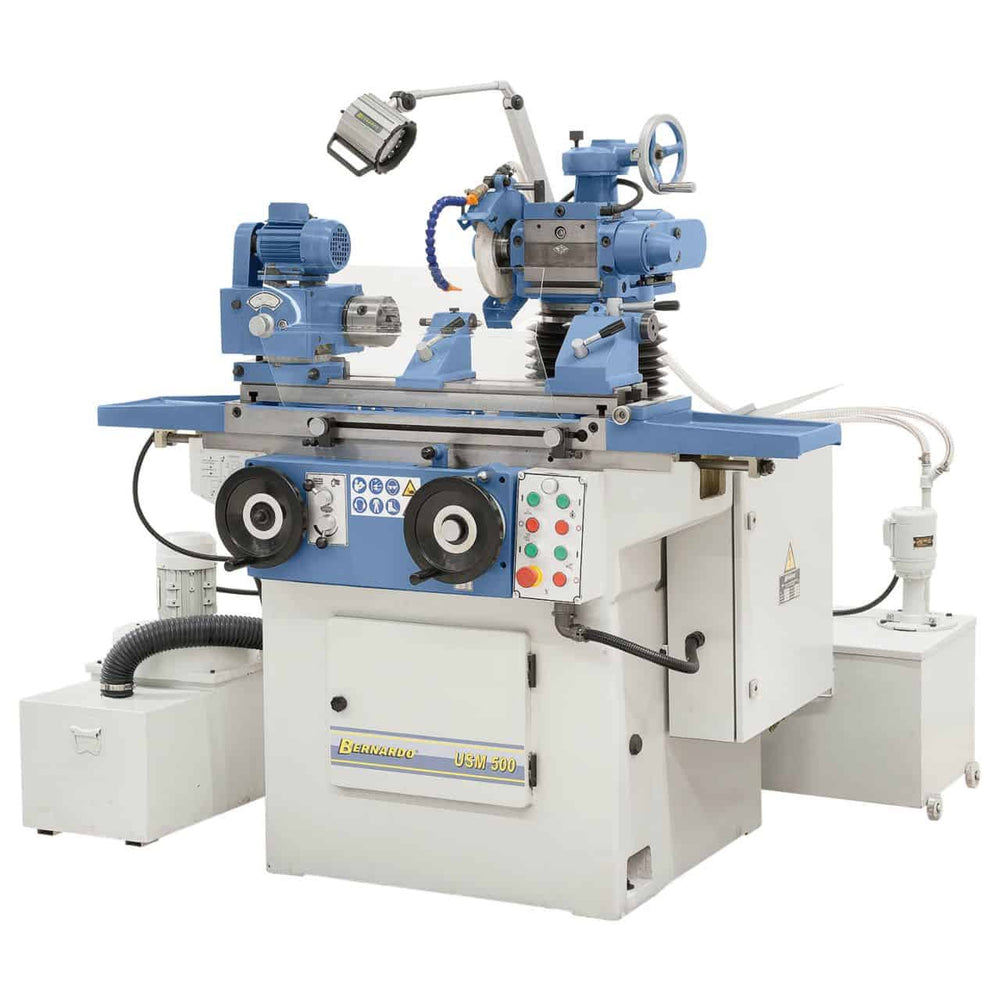 La Bernardo Smerigliatrice universale USM 500 con aspirazione combina in un’unica macchina le funzioni di rettifica circolare, piana e per utensili. Grazie alla robusta struttura in ghisa, assicura lavorazioni stabili e prive di vibrazioni, garantendo risultati precisi e professionali. Utilizzata in officine meccaniche, reparti di produzione e scuole tecniche, aumenta la produttività grazie alla sua versatilità. È dotata di cuscinetti speciali del mandrino per una rettifica accurata, lubrificazione centralizzata e sistema di aspirazione e refrigerazione integrati. Il mandrino portapezzo inclinabile (-90°/+90°) e la testa mola (-100°/+100°) consentono ampie possibilità di lavorazione. La tavola da lavoro è regolabile manualmente o idraulicamente con corsa longitudinale fino a 480 mm. Con una potenza totale di 2,5 kW e accessori completi di serie (dischi abrasivi, divisore, mandrino autocentrante, dispositivo rettifica interna), rappresenta una soluzione completa e affidabile per la rettifica universale.