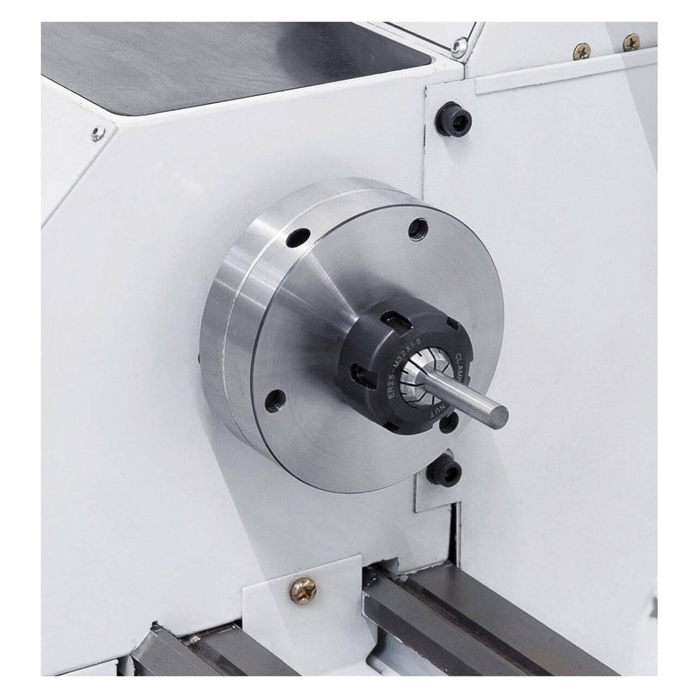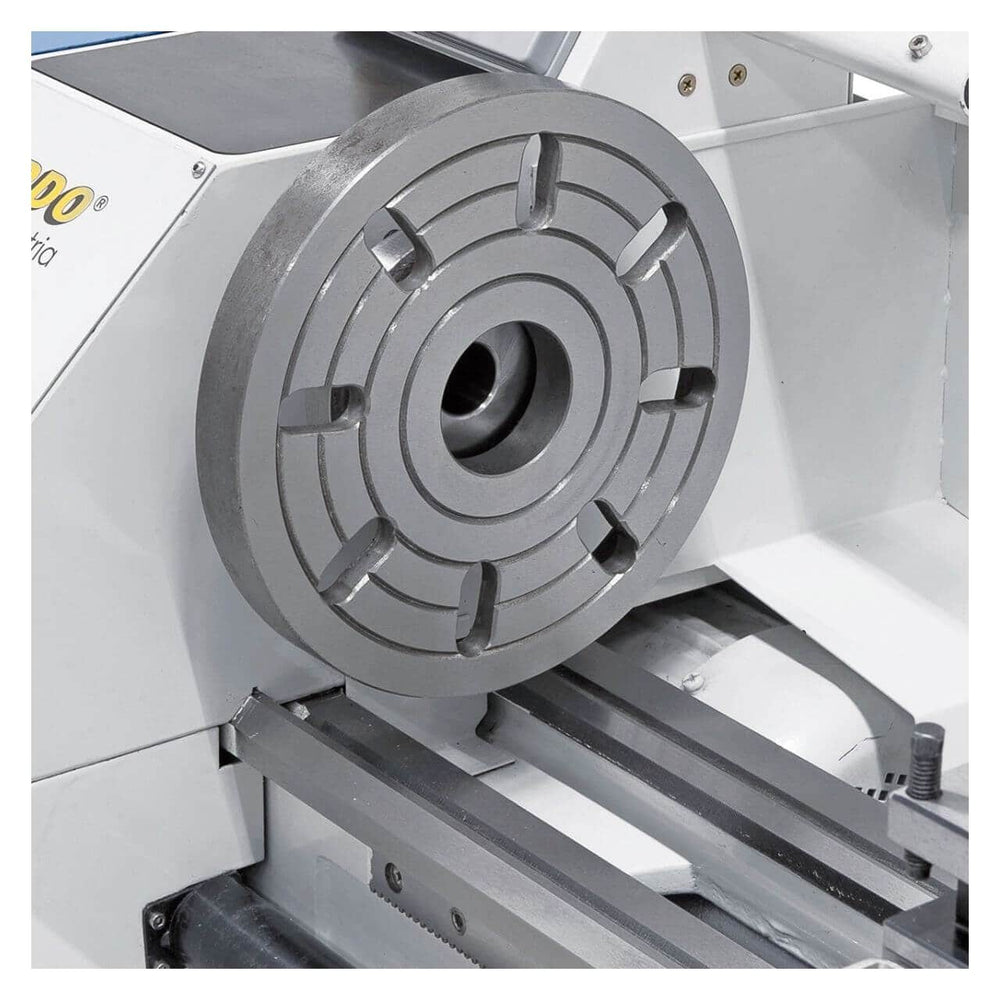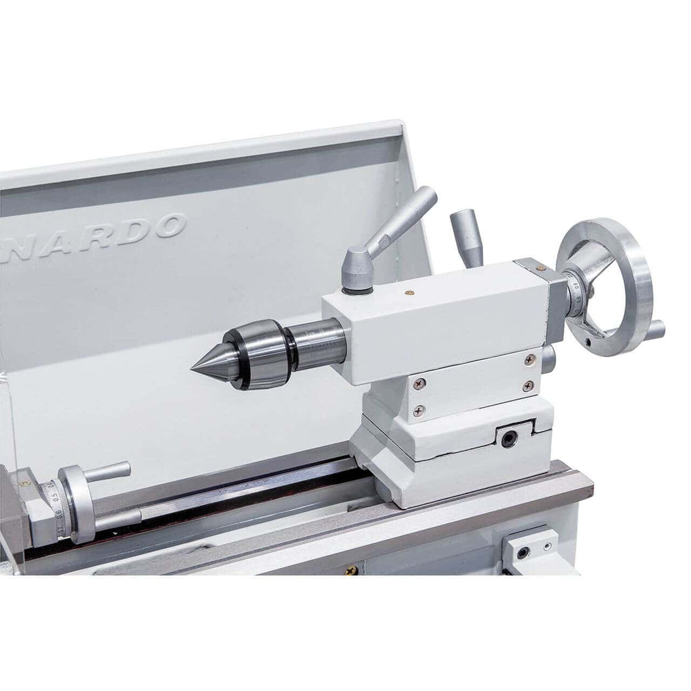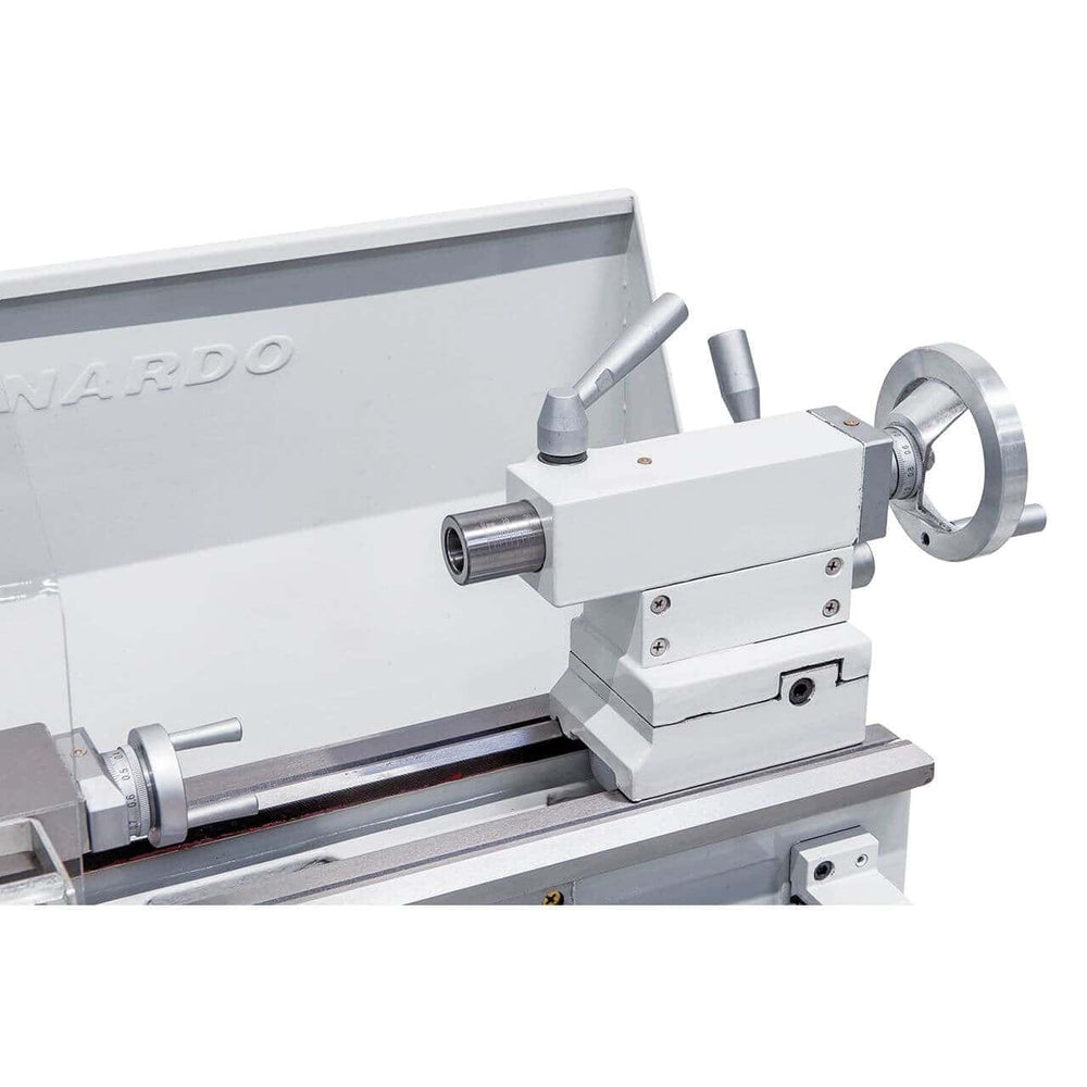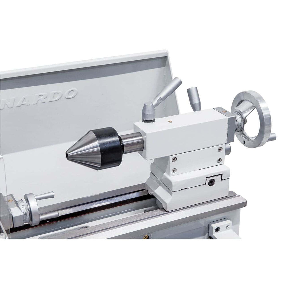 Il tornio Bernardo Profi 450 S / 230 V è un modello compatto e potente, ideale per officine, laboratori e hobbisti evoluti che cercano precisione e stabilità. Con una distanza tra le punte di 450 mm e un’altezza di centro di 115 mm, consente la lavorazione di pezzi fino a Ø 230 mm. Il foro mandrino da 20 mm (cono MK3) e la trasmissione a 6 velocità (125 – 2000 rpm) garantiscono versatilità nelle lavorazioni meccaniche. Dotato di mandrino autocentrante Ø 125 mm, torretta portautensili a 4 posizioni e paraspruzzi, offre sicurezza e praticità. Con un motore da 0,90 kW (1,35 kW S6) e un peso di 112 kg, assicura robustezza e riduzione delle vibrazioni. Una scelta perfetta per chi desidera un tornio da banco professionale, compatto e performante.