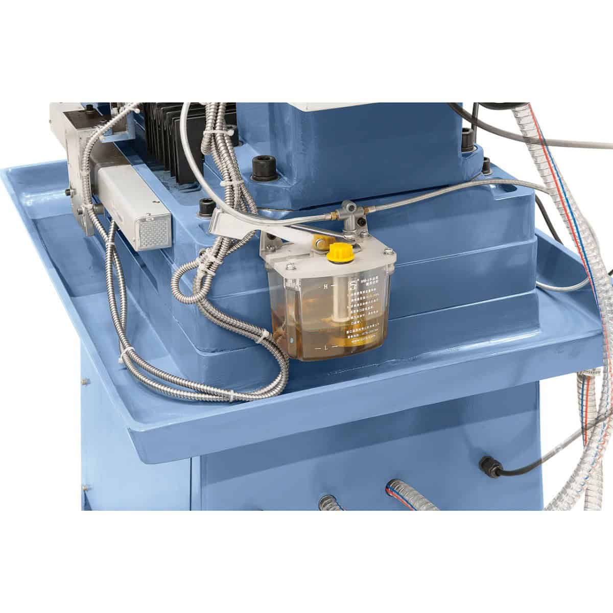 Inclusi di serie: visualizzatore digitale a 3 assi ES-12 V, dispositivo di filettatura, pompa di refrigerazione integrata nel basamento in ghisa, protezione regolabile e luce LED. Una macchina robusta e completa, ideale per lavorazioni intensive di fresatura e foratura.