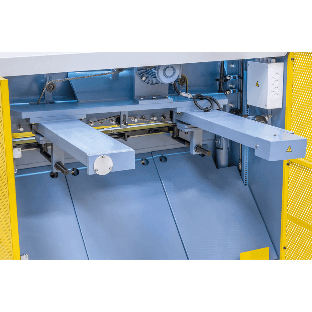 La cesoia idraulica Bernardo HST 1300 x 6 è progettata per il taglio professionale di lamiere fino a 1300 mm di lunghezza e 6 mm di spessore (400 N/mm²). La robusta struttura in acciaio saldato assicura stabilità e lavorazioni prive di torsioni, mentre l’illuminazione integrata con linea di taglio a contorno d’ombra garantisce massima precisione. L’arresto posteriore CNC motorizzato, regolabile fino a 700 mm, consente impostazioni rapide e precise. Grazie al dispositivo pressore automatico, il fissaggio della lamiera avviene in totale sicurezza. I bracci di supporto e il piano con rulli integrati agevolano la movimentazione di pannelli di grandi dimensioni. Dotata di pedale con arresto di emergenza e sistemi di sicurezza con fotocellule e griglie protettive, offre elevata protezione all’operatore. Con un motore da 5,5 kW, serbatoio olio da 60 litri e una velocità di 16 corse/min, la HST 1300 x 6 è ideale per officine e carpenterie che necessitano di precisione e affidabilità.