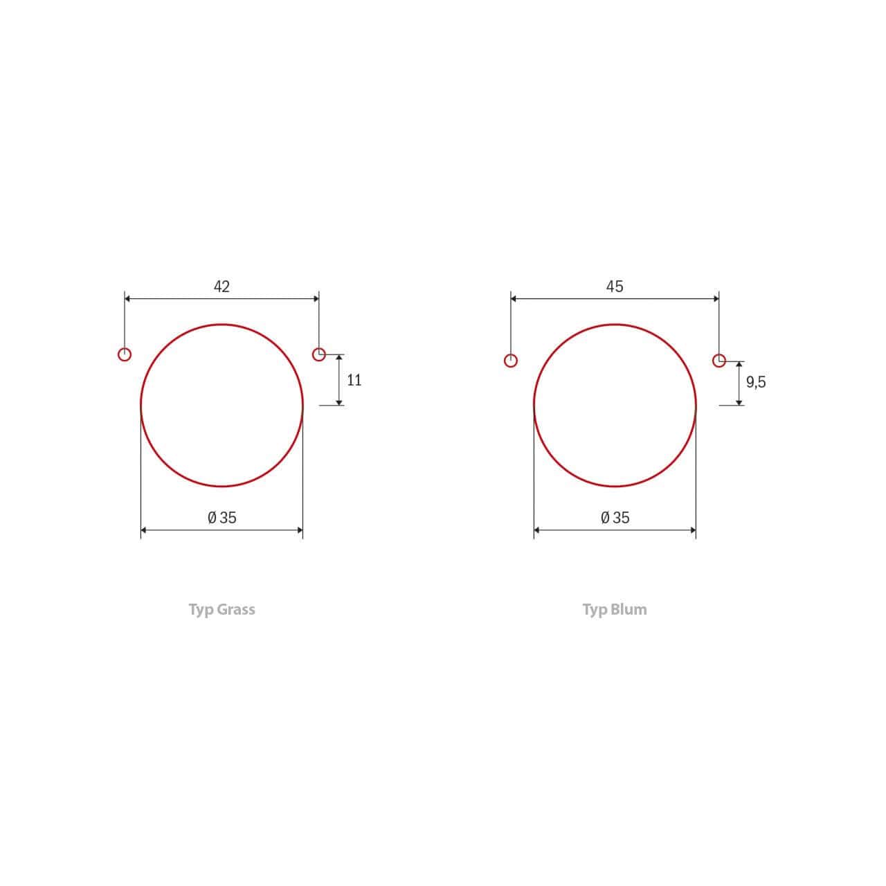 • Punta per cerniere Ø 35 mm sinistra