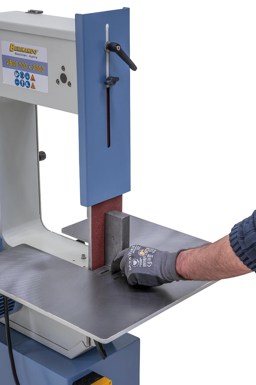 La Lucidatrice per metalli Bernardo VBM 100 x 2000 è una macchina professionale a nastro progettata per la lavorazione e la rifinitura di acciaio inox, metalli, plastica, legno e altri materiali. Dotata di due velocità (15 e 30 m/sec), consente un’ampia gamma di applicazioni, dalla sbavatura dei bordi alla lucidatura di saldature, fino alla levigatura di superfici e contorni. Il design verticale riduce l’ingombro, mentre la struttura robusta e priva di torsioni assicura stabilità e funzionamento regolare. La macchina è fornita con tre dispositivi standard per la levigatura di profili cilindrici (Ø 30 / 47 / 74 mm), un tavolo inclinabile fino a 60° e un pratico vano porta-attrezzi integrato nella base. Con nastro da 100 x 2000 mm, motore da 1,5 / 2,2 kW e aspirazione integrata, la VBM 100 x 2000 è la soluzione ideale per officine e carpenterie che richiedono precisione e versatilità.