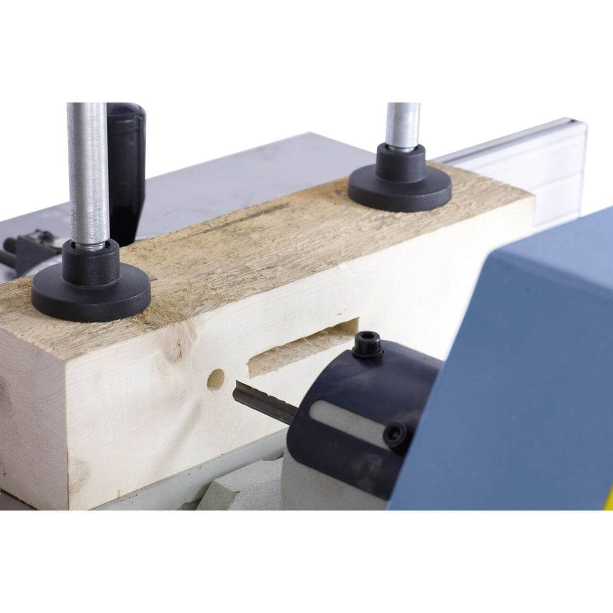 La macchina è fornita con 4 colletti per scalpelli e uno scalpello a mortasa da 9,50 mm per realizzare giunzioni a tenone con elevata precisione.