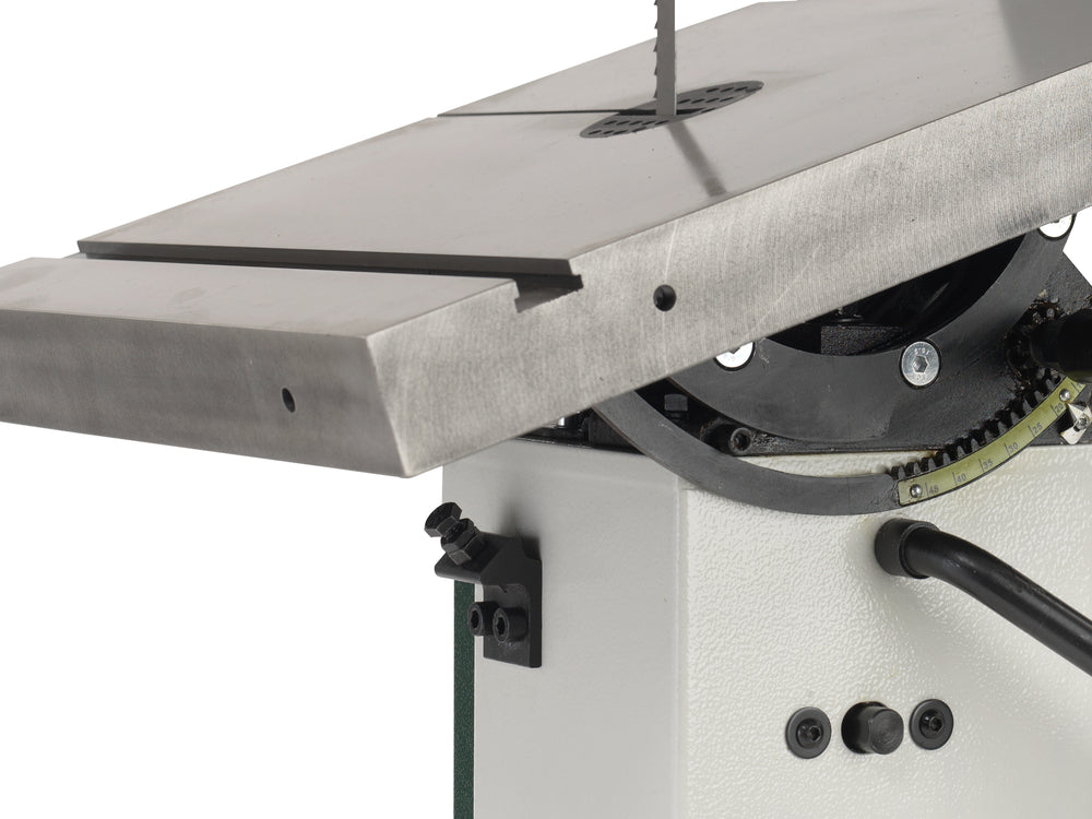 Con una profondità di taglio di 305 mm e una gola di 345 mm, questa macchina consente di lavorare facilmente masselli, pannelli e tavole spesse. Il motore da 1,5 kW garantisce spinta costante sui legni duri, mentre la doppia velocità lama (440 / 1000 m/min) permette di ottimizzare il taglio in funzione del materiale.