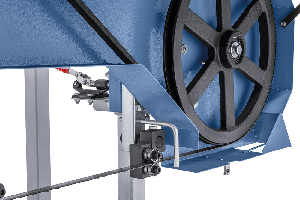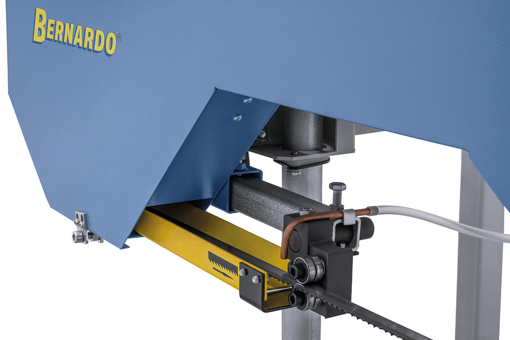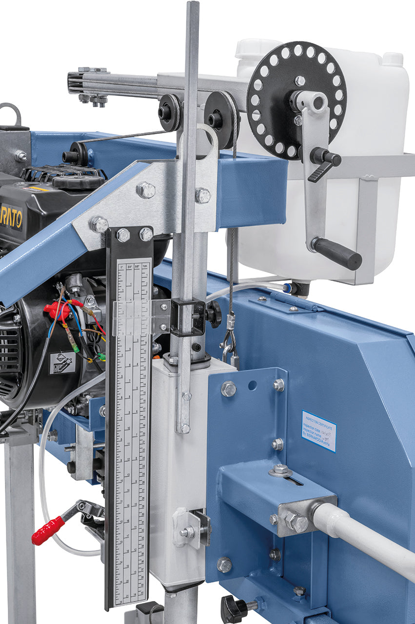 La Bernardo BBS 400 B è una sega a nastro per tronchi alimentata da un potente motore a benzina da 5,1 kW (7 HP), ideale per lavori mobili in segheria, falegnameria e agricoltura. La struttura solida e le ruote motrici in ghisa grigia, bilanciate dinamicamente, assicurano tagli precisi e un funzionamento regolare anche su legni duri. Il sistema di regolazione manuale dell’avanzamento e dell’altezza permette un controllo totale del taglio, mentre il serbatoio refrigerante con valvola di dosaggio garantisce una lubrificazione ottimale della lama. Grazie alla possibilità di montare prolunghe opzionali per il banco, è possibile lavorare tronchi di qualsiasi lunghezza. La versione a benzina è perfetta per chi necessita di autonomia e trasportabilità senza compromessi sulla potenza.