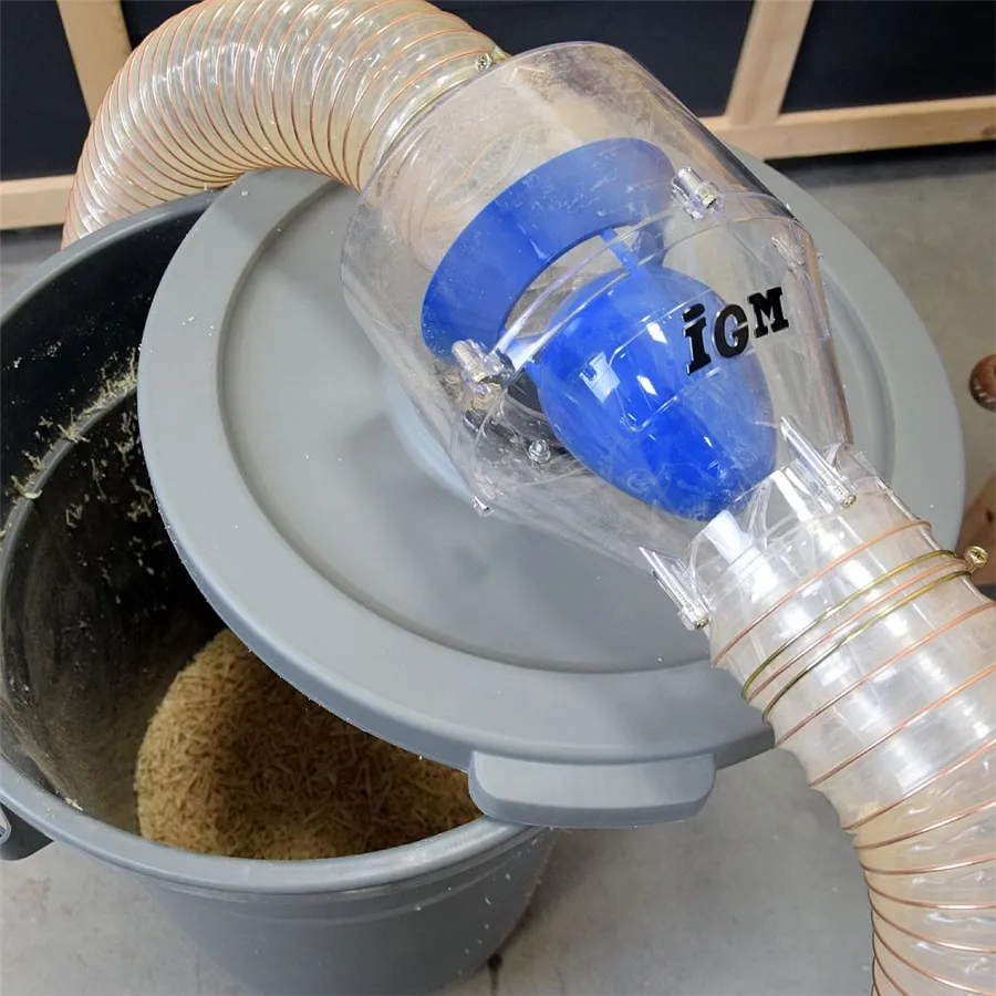 Il Separatore per la Polvere STO-P100 è un accessorio indispensabile per ogni laboratorio di falegnameria che utilizza sistemi di aspirazione. Grazie alla sua struttura ciclonica da Ø100 mm, separa in modo efficace trucioli grossolani, polvere e detriti, convogliandoli direttamente in un contenitore di raccolta.