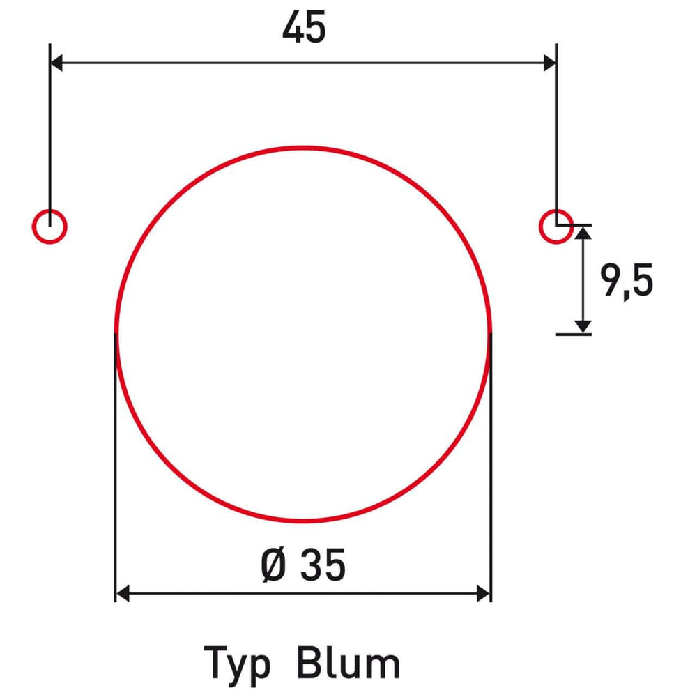 Testa di alesatura 45 / 9.5 per cerniera tipo Blum, impugnatura con trapano