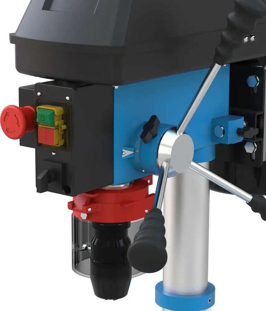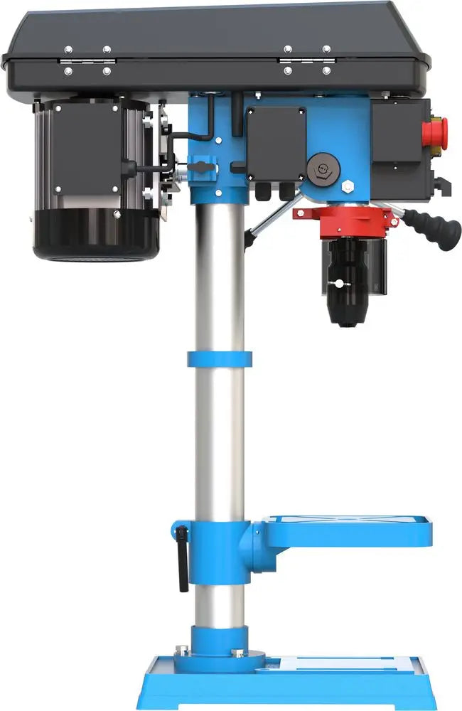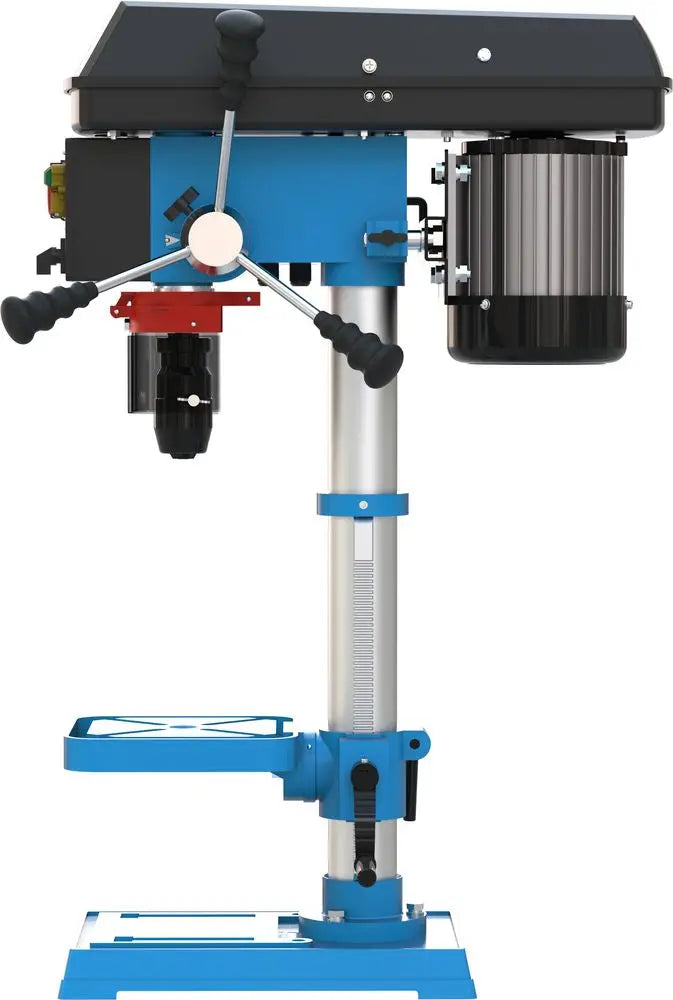 Il Guede GTB 16/612 R+L è un trapano a colonna trifase robusto e preciso, progettato per lavorazioni professionali su metallo, legno e plastica. Equipaggiato con motore da 600 W e trasmissione a cinghia trapezoidale con pulegge a 5 velocità (da 630 a 2700 giri/min), offre versatilità e controllo. La funzione rotazione destra/sinistra consente l’utilizzo di utensili filettatori o l’estrazione agevole delle punte. Il mandrino autoserrante da 1–16 mm, l’attacco MK2/B16, e il tavolo da 200 x 200 mm inclinabile ±45° e ruotabile 360° con canali per liquido refrigerante assicurano prestazioni professionali. Struttura in acciaio solida con colonna Ø 60 mm, base 235 x 355 mm e protezione trucioli pieghevole. Ideale per officine, laboratori e hobbisti esperti che cercano potenza e precisione.