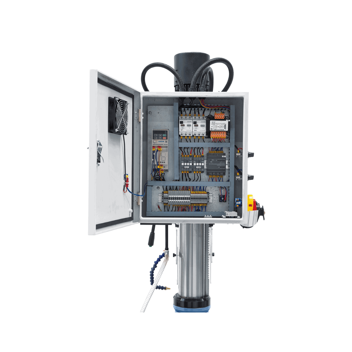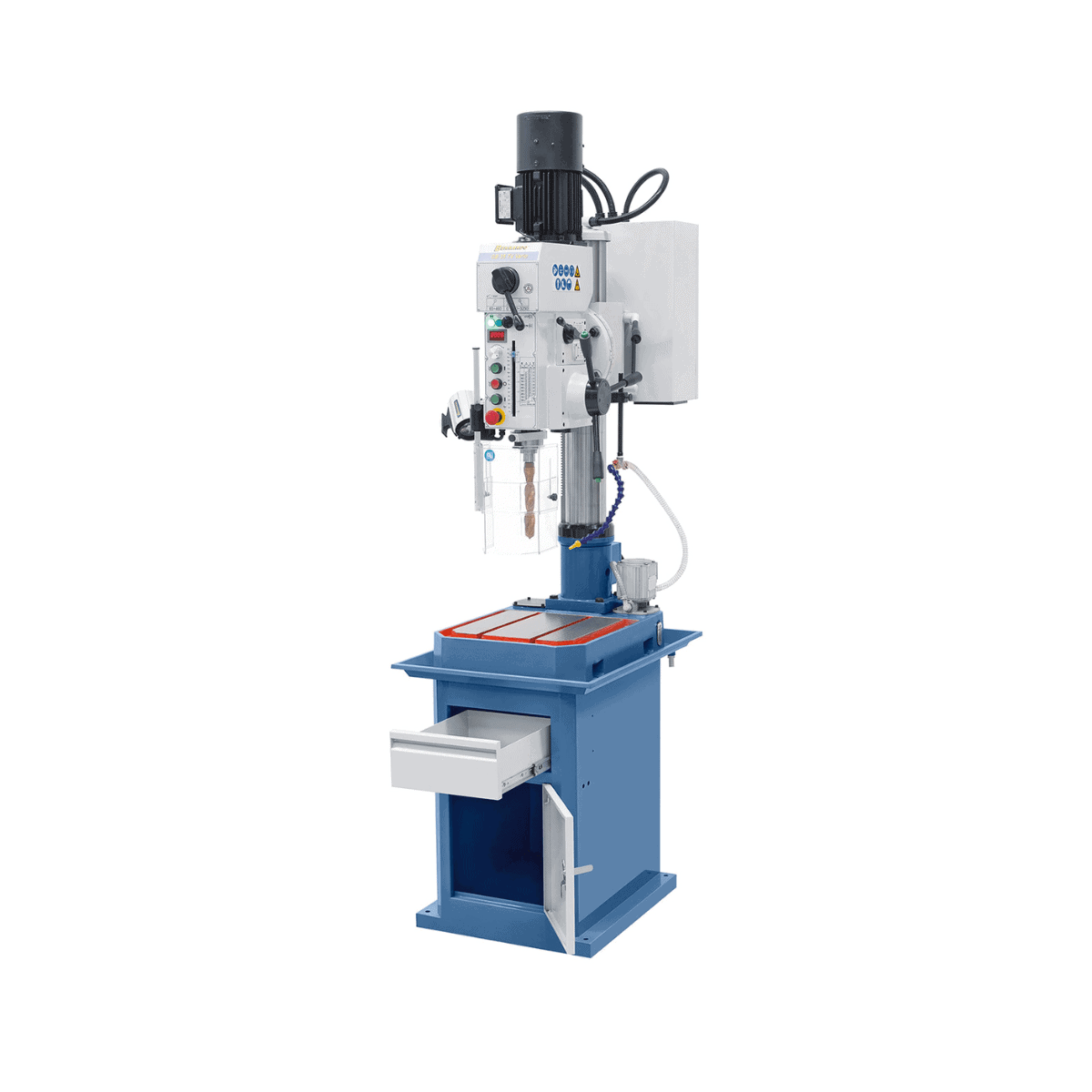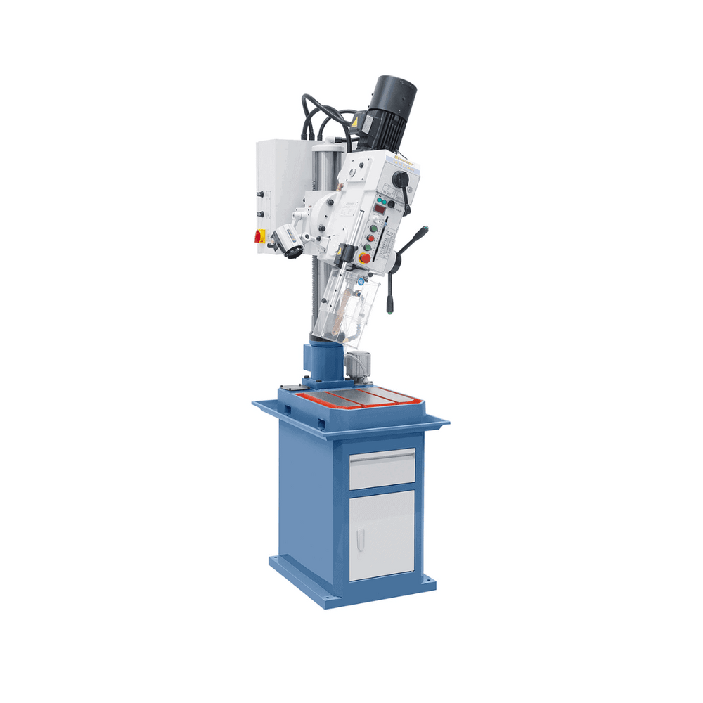Il trapano a colonna Bernardo GB 35 TV Vario è una macchina robusta e precisa, progettata per lavorazioni professionali di foratura e filettatura fino a M24. La regolazione continua della velocità, con visualizzazione digitale, e la testa inclinabile da -45° a +45° offrono massima flessibilità nelle applicazioni.