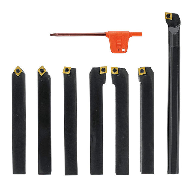 • 6-pezzi Kit utensili da tornio con inserti multitaglienti HM