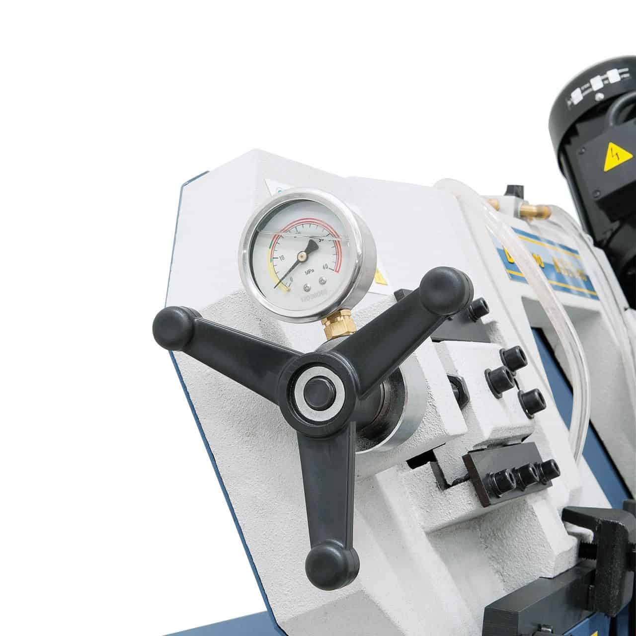 • Morsa con regolazione rapida e manometro per tensione lama